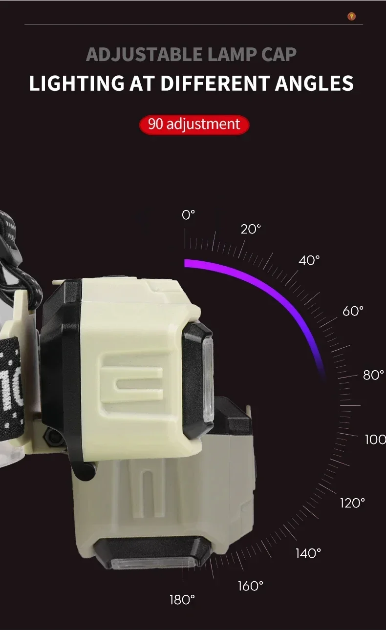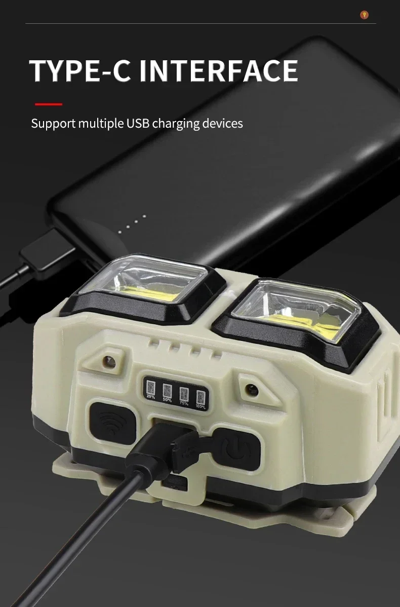 A compact COB headlamp built for camping, fishing, work, and everyday outdoor use. Choose a standard button model or a motion-sensor model for quick hands-free control. Wide 60° flood beam, Type-C charging, red light mode, and an IPX4 splash-resistant rating.