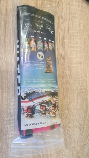 Very cool waterproof bag. It has the possibility to attach straps, turning it into a backpack. It seems to be waterproof because the fabric is of good quality and covered with a rubber layer inside. Size 30L is perfect for a bicycle rear rack as a set for panniers. I recommend.